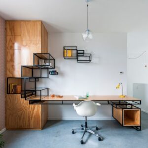 Rất nhiều nội thất tối giản của căn hộ sử dụng là các thanh sắt ...