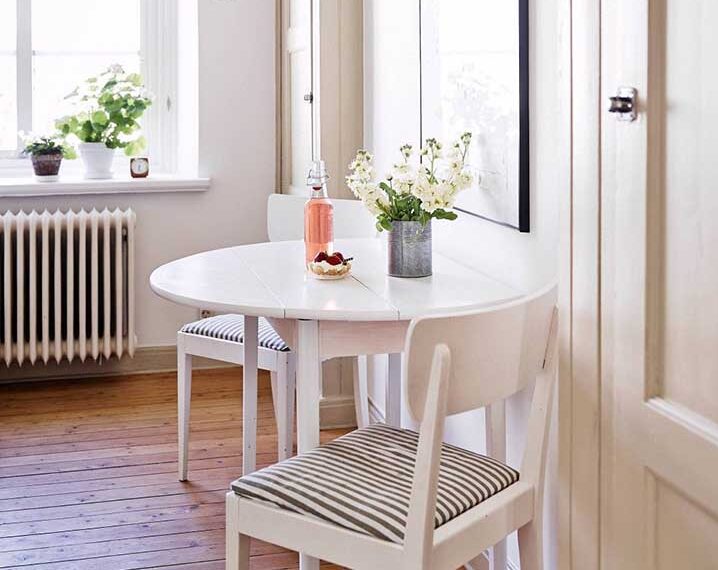 Chẳng hạn, bạn có thể mở rộng vào mỗi bữa ăn, mặt bàn rộng rãi với sức chứa lên đến 4 người và gập lại nhỏ gọn khi không sử dụng. Chính nhờ ưu điểm này mà bạn có thể đặt chiếc bàn ăn này ở những vị trí trống trong nhà mà không gây chiếm nhiều diện tích.
