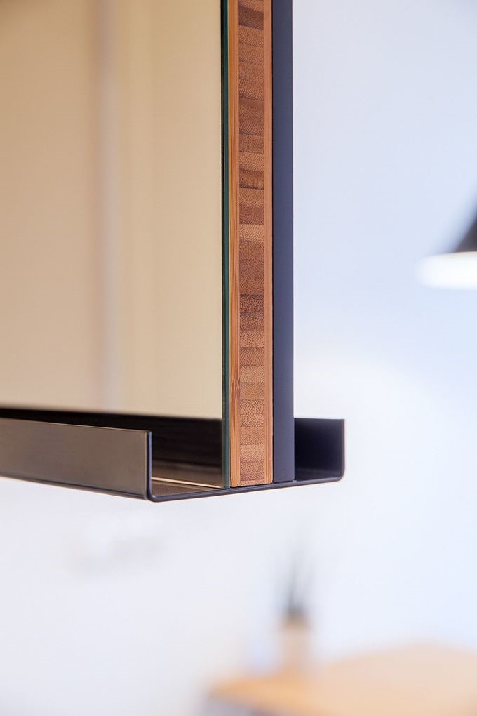 Không chỉ tiết kiệm không gian, thiết kế cũng đề cao tính thẩm mỹ. Những mảng gỗ, tre được sử dụng như một điểm nhấn trên phông nền trắng của căn hộ, tạo ấn tượng về mặt thị giác.